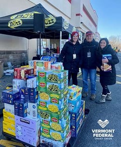 In addition, Vermont Federal Credit Union also partnered with local radio stations 106.7 WIZN and 99.9 The BUZZ to host the 13th annual Feed Your Neighbor food drive to benefit Feeding Chittenden and the Joint Council for Economic Opportunity. This year the food drive collected over 7,000 lbs of food to help members of our community.